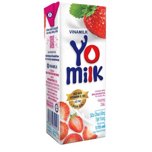 Uống sữa chua - Vinamilk - Yomilk cho tất cả mọi người - Hương vị dâu tây - 170 ml x 48 hộp mỗi thùng GMP, ISO, Halal